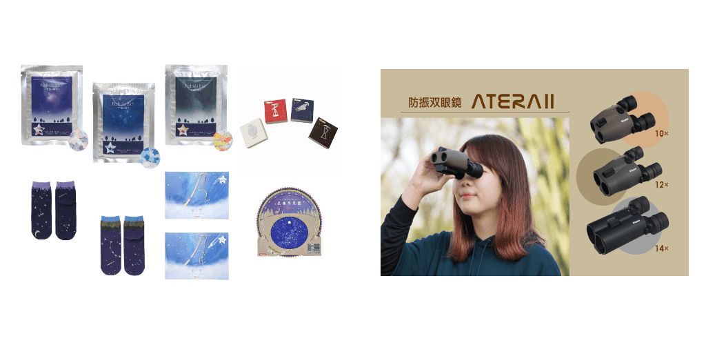 星空モチーフの雑貨販売や、天体望遠鏡・双眼鏡の製品展示を行います。