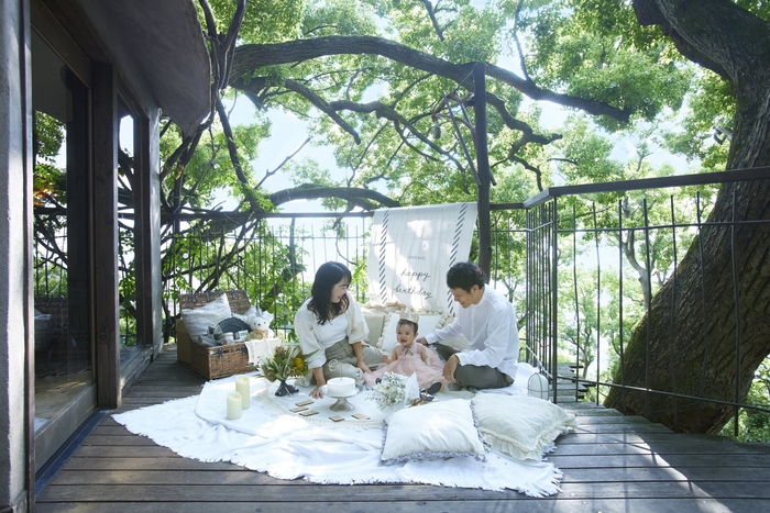 本プランでは、特別仕様に飾り付けられた空間で、心地よい風を感じながら、おしゃれした子どもを囲んで華やかにお祝いができます。パーティーを行う空間は、MARLMARLのデコレーションで本プラン特別仕様に飾り付けました。リゾナーレ熱海では「森の空中基地 くすくす」が、那須と八ヶ岳では、お部屋のテラスがバースデーパーティー会場です。特別な空間の中で子どもの写真を沢山撮ったり、家族で歌を歌ったり、思い思いのひとときをワクワク感満載で過ごせます。