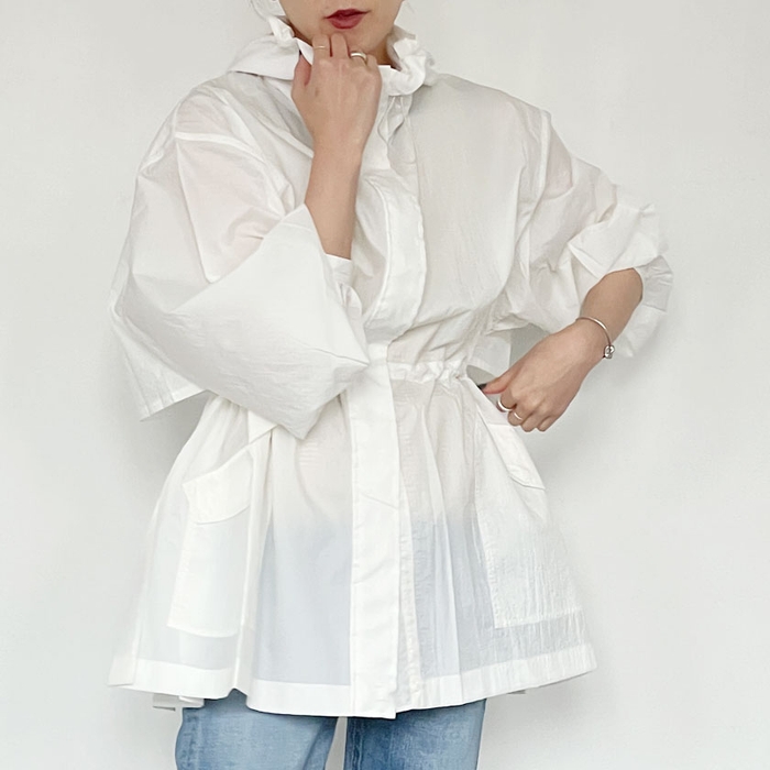 スポーティーな印象の中にもボリューム袖で可愛さをプラスし、またウエストのスピンドルゴムを絞ることでシルエットを変えてコーディネートを楽しんでいただけます。