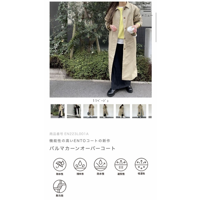 一見しただけではわかりづらいのですが、ENTOのお洋服は小さなところや素材使いにこだわりぬいて作っています。それぞれのアイテムの特徴やポイントなどを、画像を用いて詳しく紹介しているので、お店で接客を受けるように、着こなしのコツについてもお楽しみいただけるようになりました。