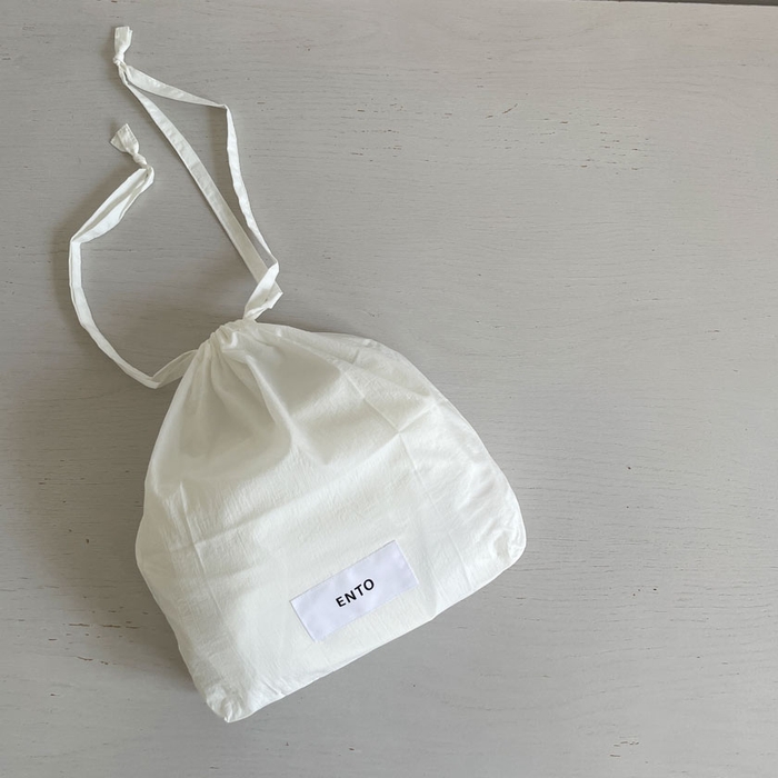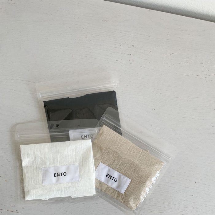 シワ加工が施されたややマットで透け感のある、UVカットと撥水性を兼ね備えたENTOオリジナル素材のポケッタブルブルゾンは、初夏お勧めのアイテムです。