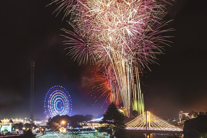 夜空にオーロラが出現する「奇跡のオーロラショー」と、夜空に輝く音と光のエンターテイメントショー「花火ファンタジア」を連続で楽しめます。