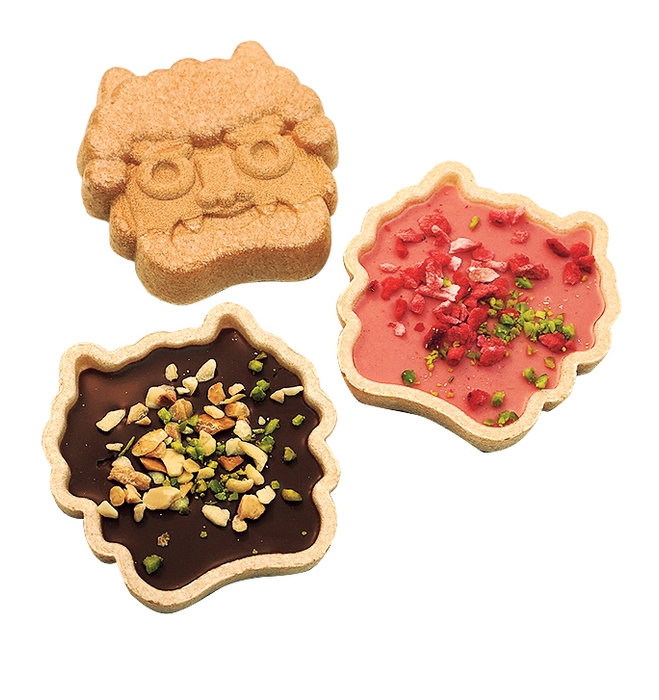 ミルクチョコ、苺チョコを流し込んだ洋風の鬼型最中。