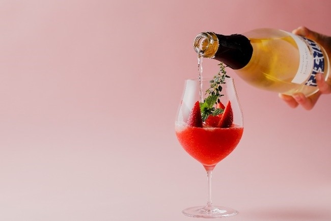 一杯に苺を8粒使用した、旬の苺そのものを楽しむための新作カクテル。京都産「章姫」のフレッシュな苺とストロベリーフローズンに、京都青谷の城州白梅を原料としたスパークリングワインを注ぎ入れたカクテルです。苺の果肉感と青梅の豊かなアロマが絶妙にマッチした、甘くスッキリとした味わいで、食後のデザートとしてもお楽しみいただける一品です。まさに京都らしさを詰め込んだ、ここでしか味わうことのできないカクテルをご提供いたします。
