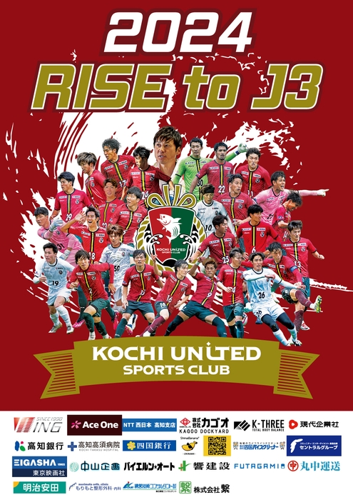 株式会社繋(本社:東京都千代田区、代表取締役:大岩 政博)は、スポンサーを務める株式会社高知ユナイテッドスポーツクラブ(本社:高知県高知市、代表取締役:山本 志穂美、以下「高知ユナイテッドSC」)がJ3昇格を果たしたことを受け、昇格記念ポスターの制作への協賛を行い、昇格記念ポスターが12月16日より高知県内各地へ掲示され始めました。