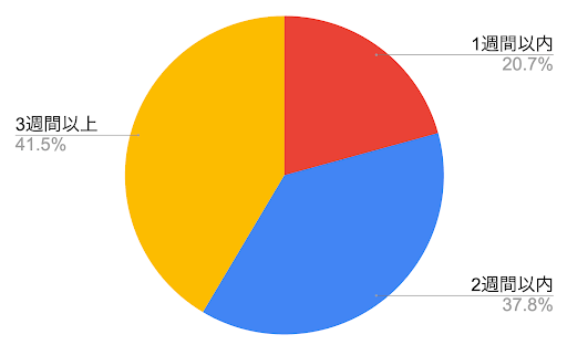 光回線の開通工事は通常2週間程度で完了することがほとんどですが、本アンケートで回答してくださった約40%の方が「3週間以上かかった」と答えています。