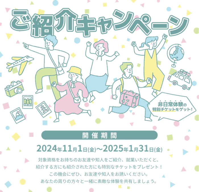 今回の調査を通じて明らかになった保育業界の新しい働き方「ダブルワーク」は、多くの保育者にとって柔軟性と満足度を高める可能性を秘めています。こうした働き方をサポートするため、弊社では現在「ご紹介キャンペーン」を実施中です。
