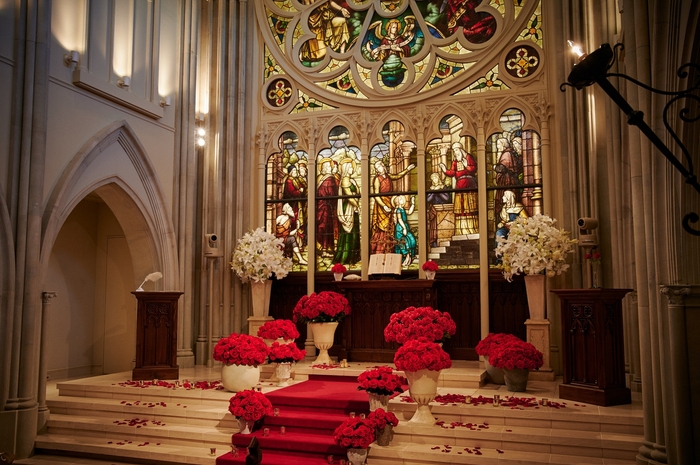 【内容】 赤バラのアートフラワー(造花)1,000本を使用したフォトスポット。様々なタイプのチャペルにご利用いただける他、