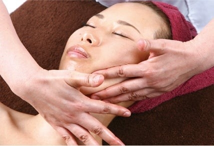 圧力をかけながらお顔をほぐし、めぐりを上げてこり、むくみを解消させる。