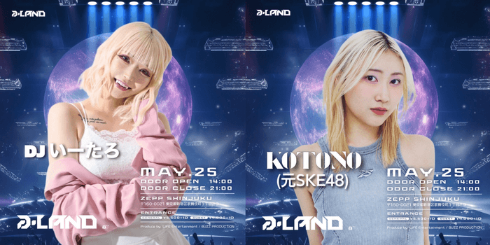「Z世代の可能性を信じ、引き出し、拡張する」といったビジョンのもと、エンターテインメントを軸に、Z世代の早期人材育成事業を展開する株式会社LIFEEntertainment( 本社:東京都渋谷区、代表取締役社長:大越春輝)は、2025年5月25日(土)にBUZZFES〈バズフェス〉を Zepp Shinjuku にて開催することを決定いたしました。同日、U-25 が楽しめるクラブフェスである ”a-LAND”〈エーランド〉も開催いたします。