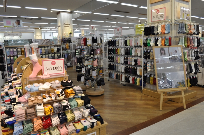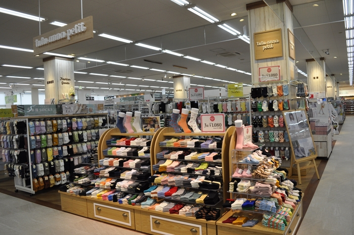 有名ブランド「tutuanna」の靴下・ナイトウェアを広々とした売り場で種類豊富に品ぞろえいたします。