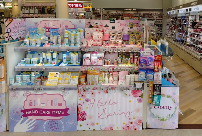化粧品コーナー「Cosmy」も売り場を刷新!SNSで話題のコスメや、アジアンコスメをコーナー化して取り扱いいたします。