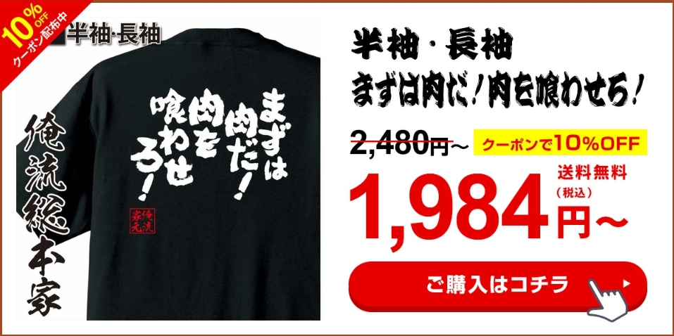 【6月29日『俺流肉の日』特別セール!人気肉Tシャツ10%OFF】楽天ランキング1位多数受賞の俺流総本家が贈る特別キャンペーン!肉好き必見のユニークデザイン