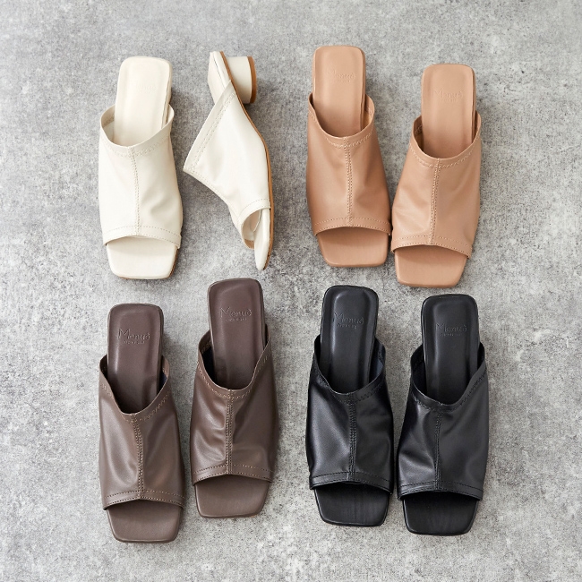 商品名 : menue (メヌエ) スクエアトゥ ラウンドヒール サンダル