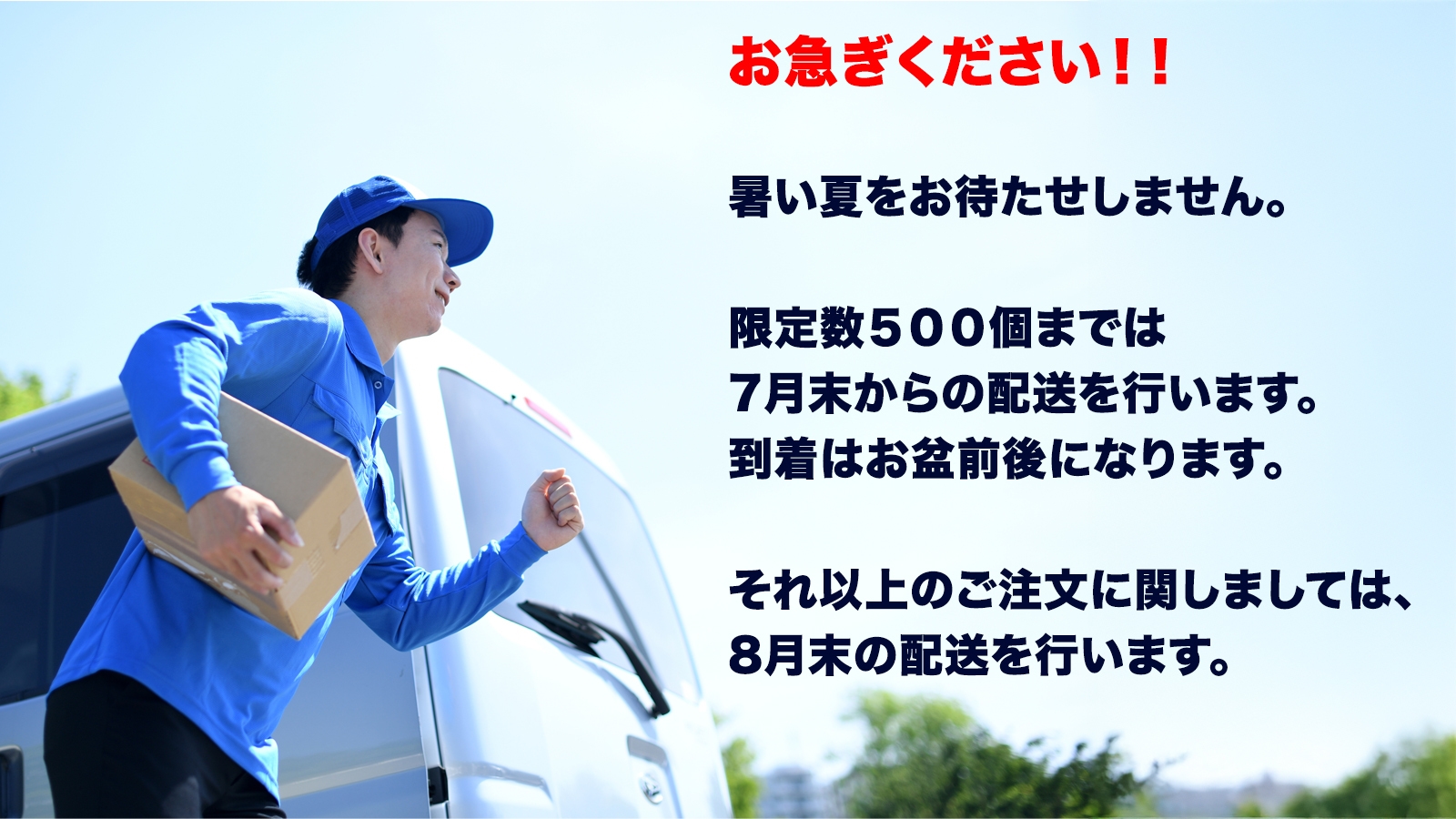 限定数500個までは、2025年7月末から配送をスタートし2025年8月末までにお届け予定となります。