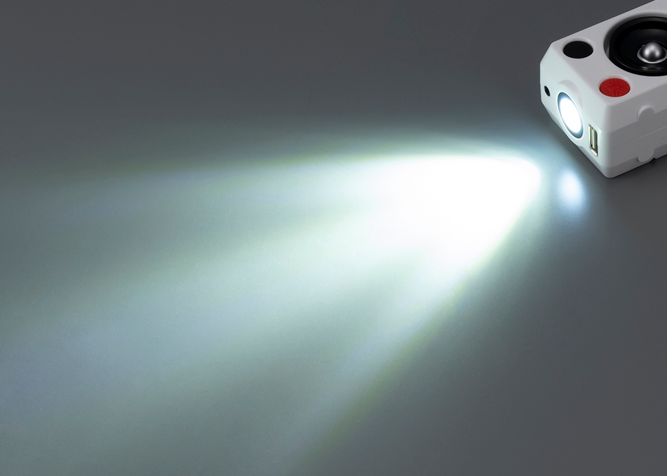 スマホの充電機能とライト機能とを強化した、ラジオライトチャージャー。