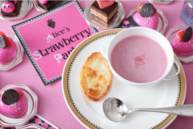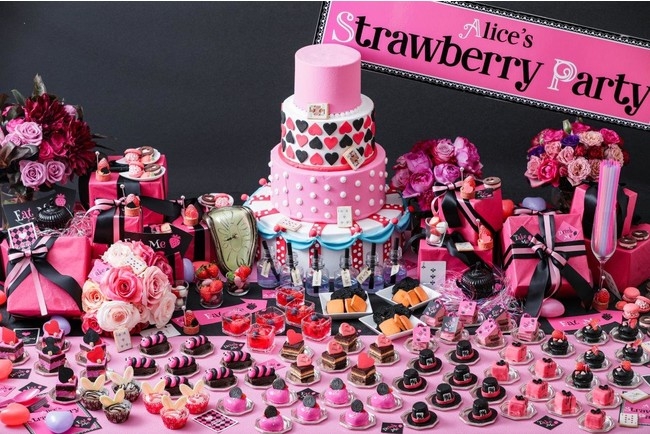 お客様毎のテーブルにスイーツが並ぶ“NO密”卓上ブッフェ!ピンク×ブラックのキュートなスイーツ達『アリスのストロベリースイーツパーティー~PINK & BLACK~』開催