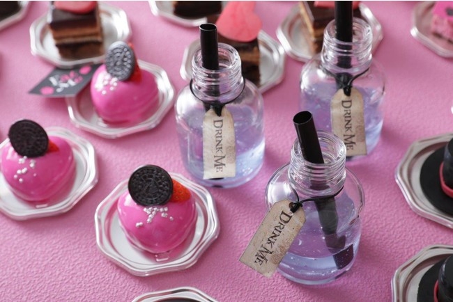 『不思議の国のアリス』の世界を表現 ピンク×ブラックカラーで統一されたユーモアあふれるスイーツ達