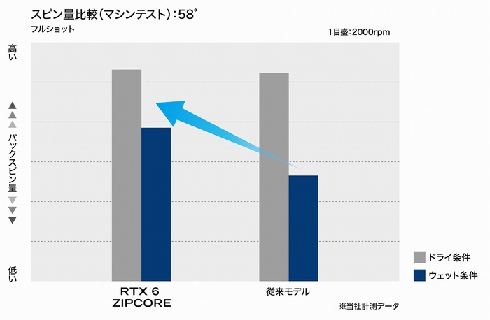 「HydraZip」フェースと「ULTIZIP」によりウエット時のスピン性能が43%アップしました。