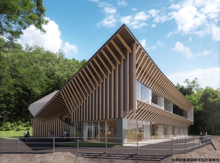 東川町は、住民の「福祉」と「健康増進」を図るとともに、域外からの来訪者に対しても本町の魅力を伝えられるような交流人口の拡大に寄与する施設として、「キトウシ保養施設」(仮称)を 2023 年夏季オープン予定で建築中です。外観は建築家 隈研吾氏に監修協力を依頼し、大雪山やキトウシ山と調和する「東川らしい」デザインとしました。
