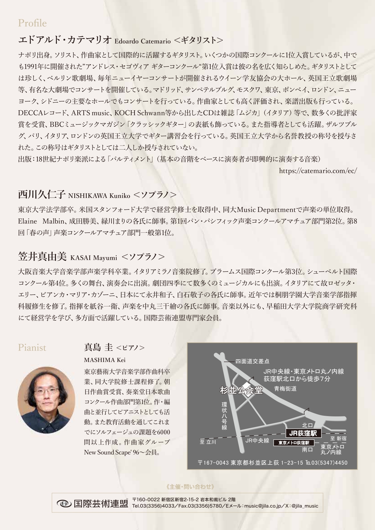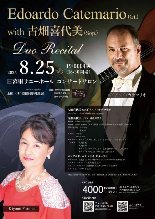 国際芸術連盟(代表:服部和彦)主催、エドアルド・カテマリオの来日公演が、2025年8月~9月の期間、東京都内にて以下の通り5公演開催されます。