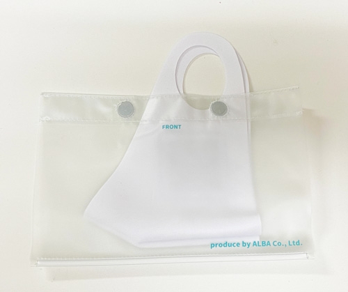 ソフト塩ビ素材の柔らかい生地で作られているマスクケース。