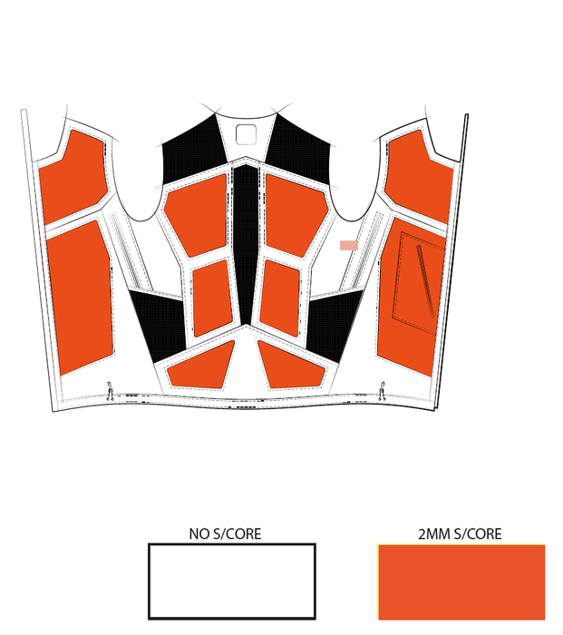 今回のGambit Jacketにはそれぞれ下図のオレンジ色部分にソーラーコアを配置することで、寒すぎず、暑すぎず心地よい温度にキープします。