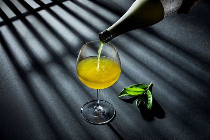 少しふくらみのある形状のシャンパーニュグラスに注ぐことで、美しくきらめく泡が立ち上がり、華やかで芳醇な香りが広がります。口に含むと、舌の上で優雅に弾ける泡と緑茶の繊細な風味が交わり、少しづつ変化する深い余韻を楽しめます。