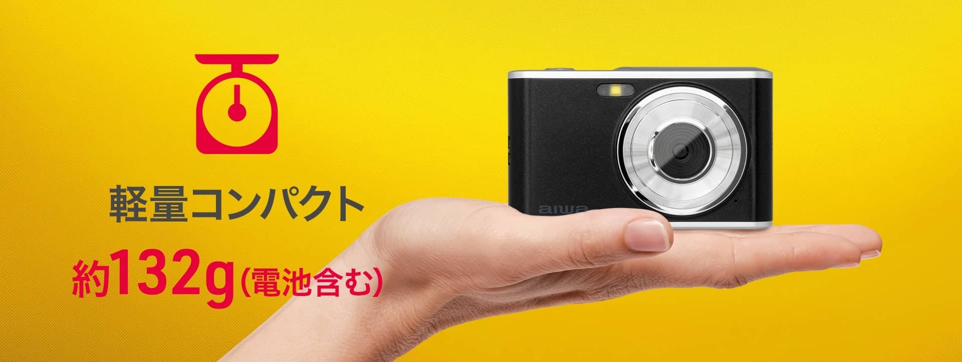 わずか約132g(電池含む)と軽量で、手のひらにおさまるコンパクトサイズなのでどこでも気軽に持って出かけられます。