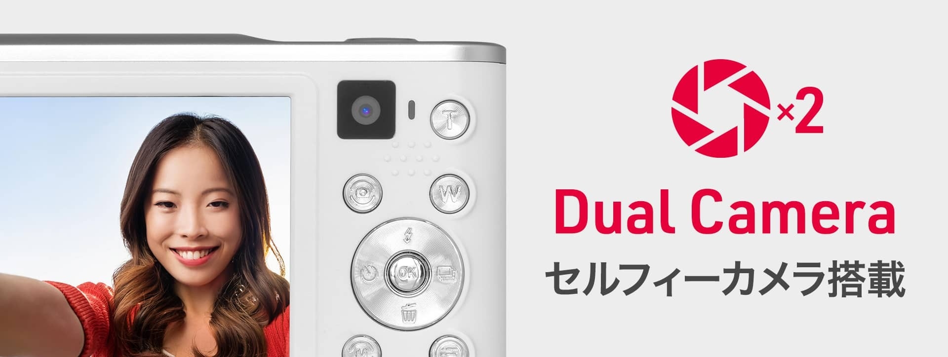 セルフィーカメラ搭載で、ディスプレイを見ながら自撮り撮影をすることができます。家族や友達など、大切な人との集合写真を撮影する際も手軽に自分も写ることができます。