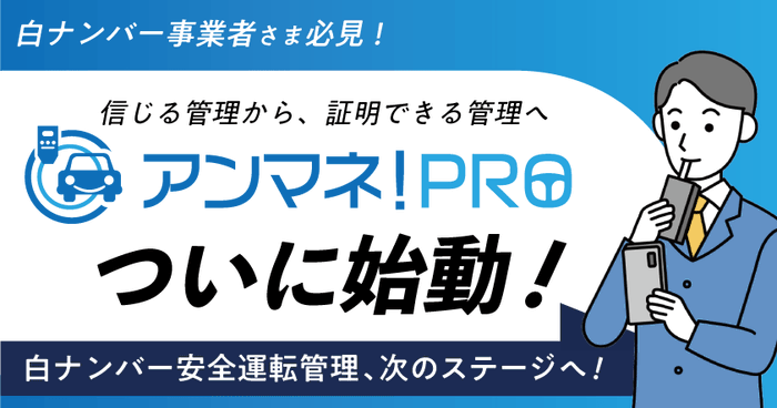 白ナンバー事業者様必見!信じる管理から、証明できる管理へ 白ナンバー安全運転管理、次のステージへ! アンマネ!PROついに始動 8月4日(月)無料ウェビナー開催