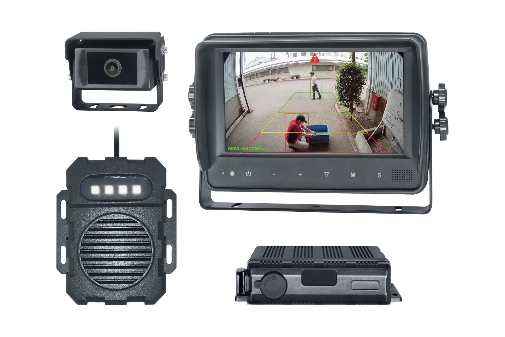 主な特徴:AIヒト検知+警告機能+モニター表示+映像・GPS・ログ記録対応