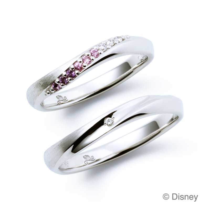 アメジスト・ピンクサファイア・ダイヤモンドをグラデーションになるよう石を配すことで、色彩の美しい『塔の上のラプンツェル』の世界観を表現しました。