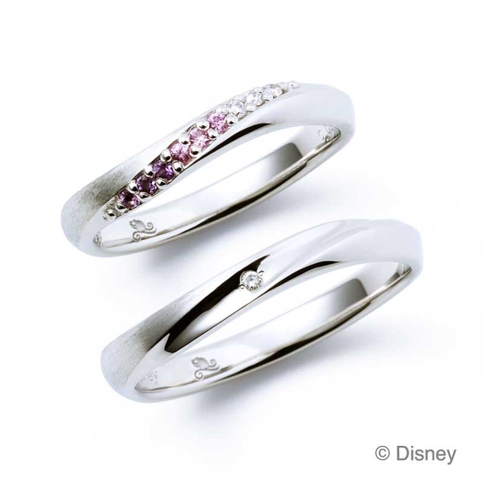 「ラプンツェル」の長く美しい髪が編みこまれた様子をイメージした、ゆるやかなひねりのフォルムが魅力のエンゲージリング。