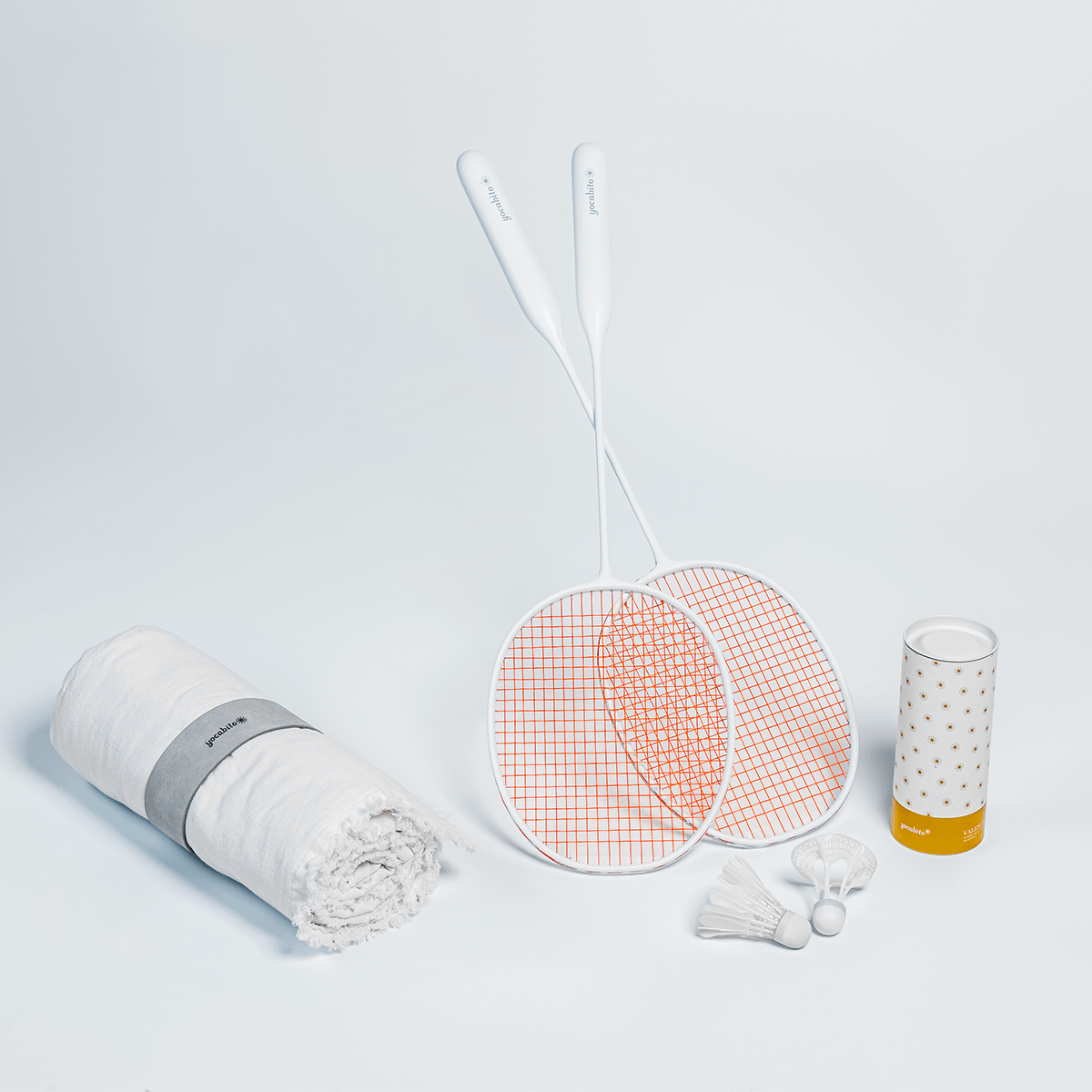 デザイナーズ・バドミントン「VALENCIA」と、コットンリネンのピクニックシート「HEIDI」がセットに。 気分が高まる、おしゃれピクニック体験を提案