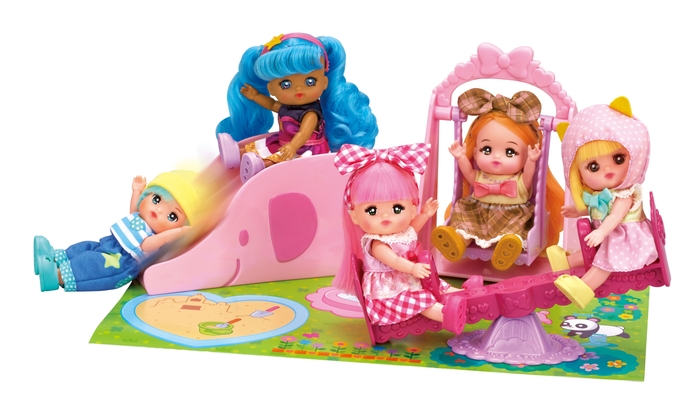 ポケットメルちゃんと一緒に、こうえんの遊具で遊べる「こうえんセット」、かわいいペットのお世話遊びが楽しめる「かわいい♡ペットおせわセット」が新しく登場します。ポケットメルちゃんとおともだちと一緒に、おでかけ遊びを楽しんでくださいね。