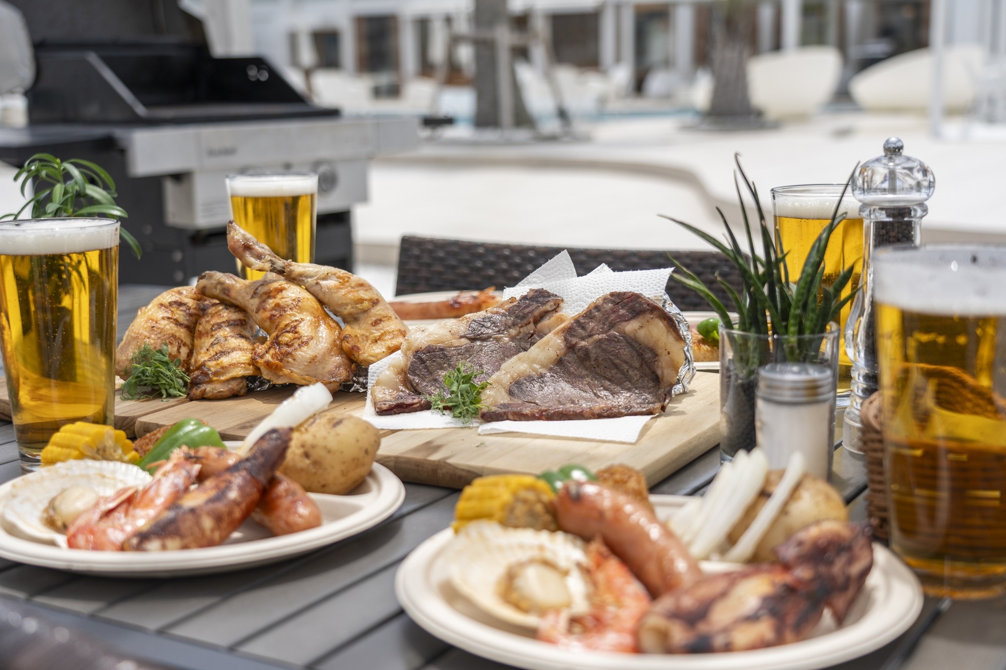 17時-21時の4時間制でBBQ食材+飲み放題付き1名5,000円(税込)にて提供。