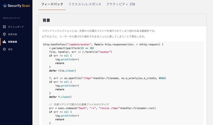 ・脆弱性の概要解説、該当箇所の修正方法の提案、トリアージに必要な情報を提供します。