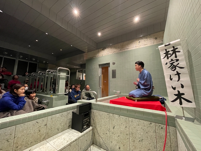 2024年1月に開催した「落語と音楽会Vol.1 如月の宴 」では林家けい木(2024年7月真打昇進)が登場。新作落語の「ぐつぐつ」と人情噺の名作「幾代餅」を披露し、会場を沸かせました。音楽ステージにはBest gigi 、グッナイ小形が出演、生歌&生音でも銭湯ならではリバーブの効いた空間を作って頂きました。