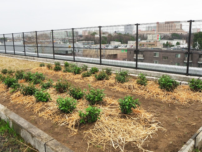 日本の食文化に触れられるよう食育を目的としており、茶摘みができるようなミニ茶畑を作りました。