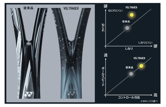 ヨネックス株式会社(代表取締役社長:アリサ ヨネヤマ) は、プロソフトテニスプレーヤー・船水颯人との共同開発で生まれた上級者向けソフトテニスラケット「VOLTRAGE 8S/8V」を2022年7月中旬より発売いたします。
