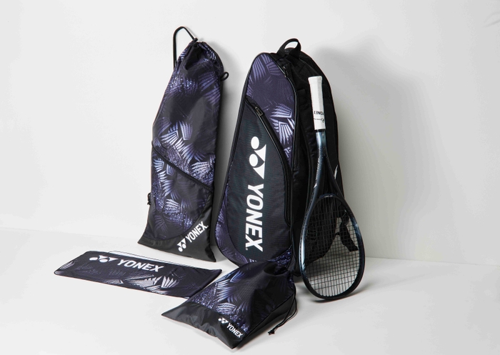 ラケットとデザインを連動させたバッグとタオルとのトータルコーディネートをお楽しみいただけます。