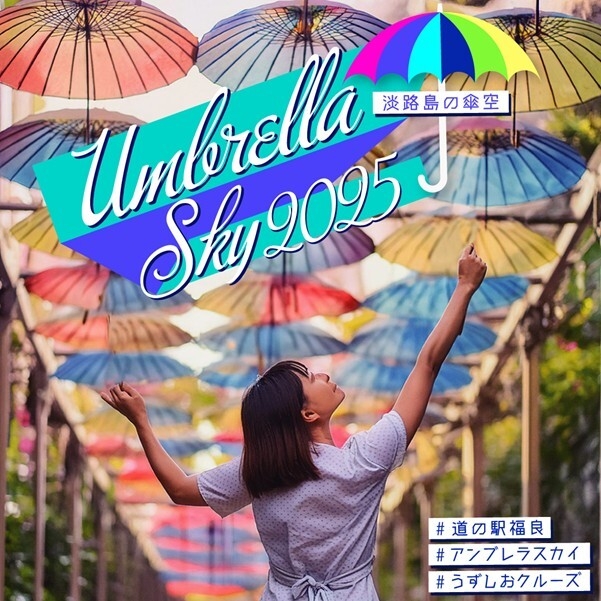 兵庫県・淡路島から出航している「うずしおクルーズ」を運営するジョイポート淡路島株式会社(本社:兵庫県南あわじ市福良、代表取締役:鎌田 勝義)は、梅雨の時期を彩るイベントとして、道の駅福良にて「アンブレラスカイ2025」を2025年6月1日(日)から8月31日(日)まで開催いたします。色とりどりの傘たちが頭上を彩り、梅雨の憂鬱な気分を吹き飛ばす、特別な時間をお過ごしください。
