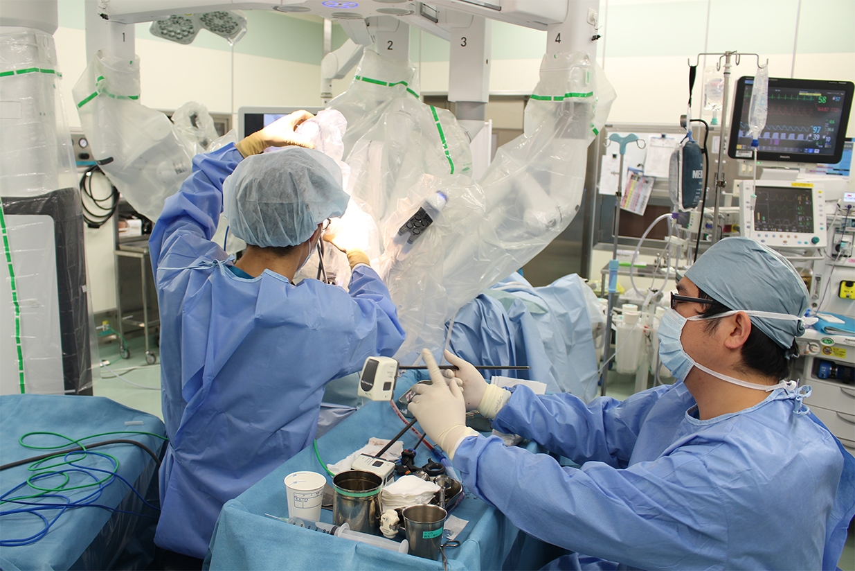 患者さんの暮らしは治療後も続きます。「がんを確実に切除すること」「極力機能を温存すること」を両立させ、会話や食事を楽しむ日常を1人でも多くの患者さんに送っていただきたい。その思いから耳鼻いんこう科・頭頸部外科で、内視鏡手術支援ロボットダビンチによる経口的ロボット支援手術(Transoral Robotic Surgery ; TORS)を開始しました。