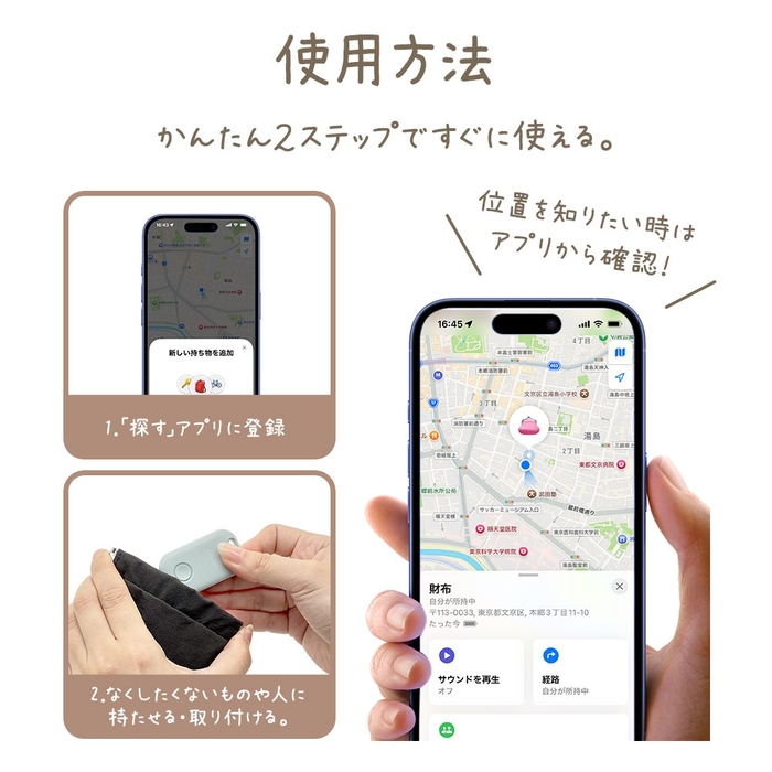 本製品はApple社の「探す」アプリに対応した紛失防止タグです。
