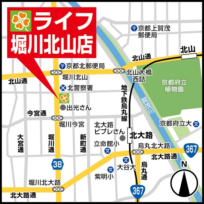 <店 名>「ライフ堀川北山(ほりかわきたやま)店」