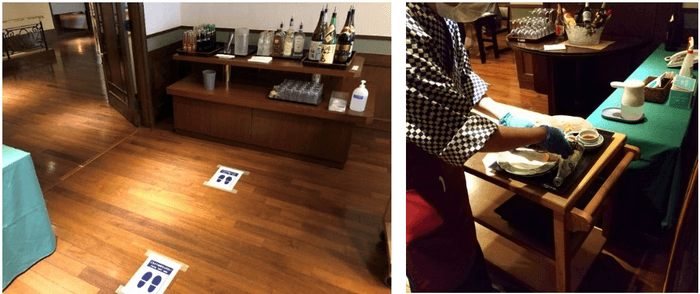 右:下げ膳と次の料理の提供を同時に行わず、作業の分離を徹底。