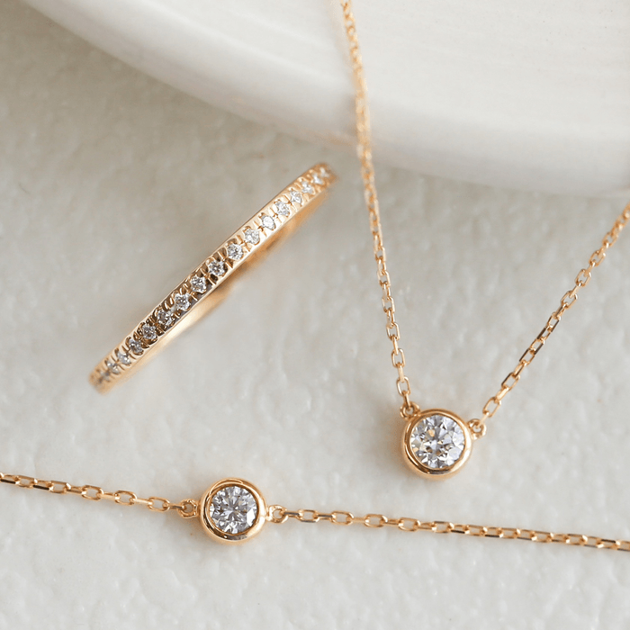 エタニティリングの引っ掛かりのなさ、チェーンリングの付け心地の良さなど一つ目のジュエリーとしてぜひお試しください。