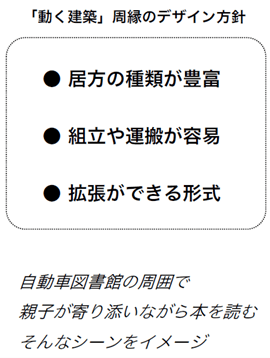 に力点を置いた。そして全体像として、自動車図書館の周囲で、親子が寄り添いながら本を読む。そんなシーンの創出を目指した。