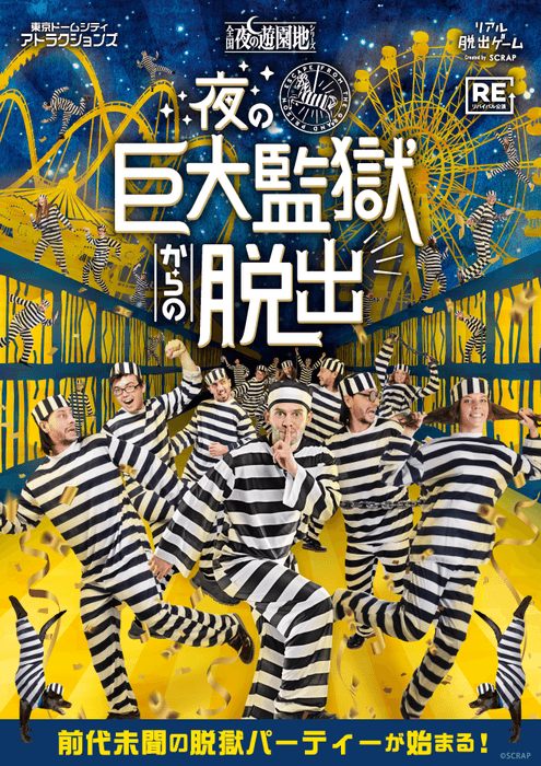本イベントの参加者はなんと収監されている囚人の一員に。仲間の脱獄犯や看守から得られる情報を元に、閉園後の東京ドームシティ アトラクションズを巡って謎を解き、制限時間以内に脱獄することを目指します。